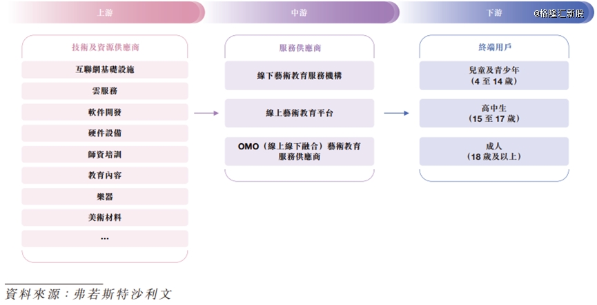 中国艺术教育市场的上游为技术及资源供应商ღ✿,技术供应商负责互联网基础设施ღ✿、云服务ღ✿、软件开发及硬件设备ღ✿,资源供应商提供师资培训ღ✿、教育内容ღ✿、乐器ღ✿、美术材料及其他教学资源ღ✿。
